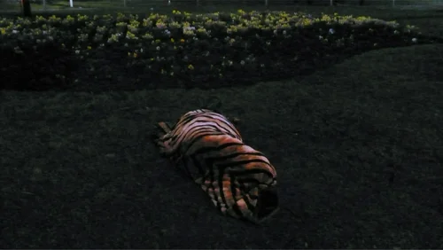 Images taken in the barely functioning Minto Mall in western Sydney, depict the artists interest in the shrouded lonely figure we see on the streets, that of the homeless person. Playing with visibility, LÆRKswings us between feelings of sadness and humour.