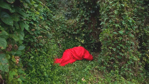 LÆRK explores ideas of place in Strangelands through performative photographic imagery. LÆRK invited Bodyweather artist Linda Luke to create cocoon-like figures lost within a foreign environment covered in the weed pest ivy, literally enveloping the landscape in Bexly, nect to Sydney’s train lines. At odds with one another, the figures sit awkwardly within pod like shapes created by the weed.
